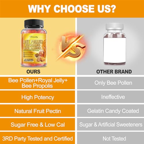 Tome 2 gomas de pólen de abelha com geleia real por dia, de preferência junto com uma refeição. Mastigue bem antes de engolir. Não exceda a dose recomendada.