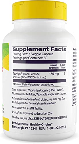 Obtenha todos os benefícios do chá verde de forma prática e eficaz com o Healthy Origins TEAVIGO, Extrato de Chá Verde, 94%% EGCG, 150 mg – Cápsulas de Extrato de Chá Verde de Camellia Sinensis – Veganas e Livres de Transgênicos. Este poderoso extrato de chá verde, derivado da Camellia sinensis, oferece suporte à saúde geral e ao bem-estar em cápsulas de chá verde sem transgênicos e sem glúten. Cada cápsula contém 150 mg de 94%% EGCG, que suporta a atividade antioxidante no corpo. Além disso, este suplemento é livre de herbicidas, pesticidas e cafeína, garantindo uma opção pura de EGCG. Os suplementos Healthy Origins são testados em laboratórios independentes para verificar a potência e a segurança de cada produto, seguindo rigorosos padrões de qualidade que nos diferenciam dos concorrentes. Desde 1996, a Healthy Origins utiliza apenas ingredientes ativos de alta qualidade para criar suplementos alimentares premium.