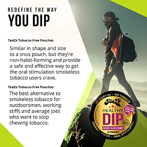 READY TO STOP- Você está pronto para parar de mascar tabaco e redefinir a forma como você mergulha? Com sabores ousados e a sensação de queimadura nos lábios que os mascadores desejam, o Teaza black cherry tobacco free chew dip é a alternativa perfeita ao tabaco sem fumaça.
