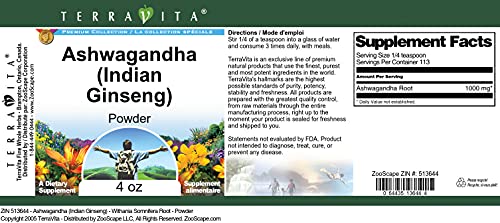 Experimente o Ashwagandha (Ginseng Indiano) – Withania Somnifera Root – Pó (4 oz, ZIN: 513644) e aproveite todos os benefícios que esta planta tem a oferecer. Sinta-se revigorado, equilibrado e fortalecido com este produto de alta qualidade da TerraVita.