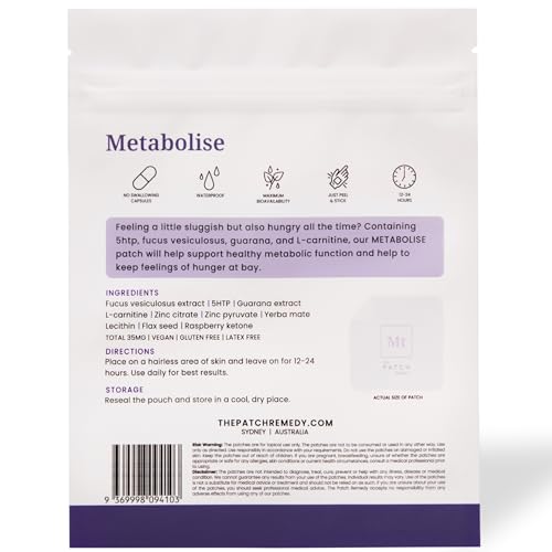 Cada Remendo Metabolize Slim Trim é embalado com ingredientes poderosos como Fucus vesiculosus, 5HTP, extrato de Guaraná, L-Carnitina, Citrato de Zinco, Piruvato de Zinco, Yerba Mate, Lecitina, Semente de Linhaça e Cetona de Framboesa. Esses ingredientes são conhecidos por sua capacidade de acelerar o metabolismo, fornecendo o suporte necessário para seus objetivos de saúde e fitness.