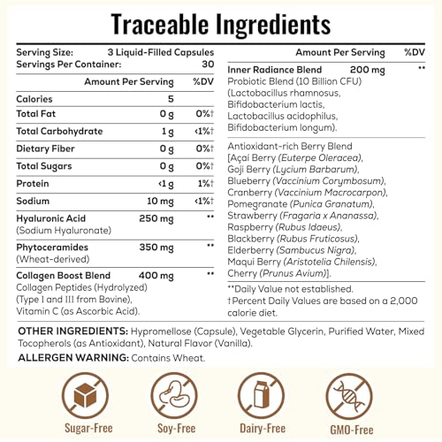 Essas cápsulas de ácido hialurônico também contêm uma mistura de 11 berries, incluindo açaí, goji berry, blueberry, romã, morango, framboesa, amora, sabugueiro, maqui berry, cereja e cranberry. Essa combinação de berries ajuda a retardar o dano celular, atrasar o envelhecimento e fortalecer o sistema imunológico.