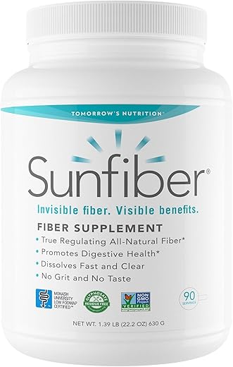 O Sunfiber da Tomorrow’s Nutrition é um suplemento de fibra prebiótica que promove a saúde digestiva. Com 6 gramas de fibra solúvel por porção, o Sunfiber ajuda a aliviar tanto a constipação ocasional quanto a diarreia, promovendo movimentos intestinais regulares e saudáveis*. Sua fórmula suave e certificada como baixa em FODMAP é geralmente bem tolerada por pessoas com estômagos sensíveis*. Além disso, o Sunfiber fermenta lentamente no intestino, promovendo a saúde digestiva sem causar excesso de gases ou inchaço*. Ele também ajuda a aumentar a saciedade, retardando o tempo de trânsito gástrico e proporcionando uma sensação de plenitude e satisfação*. Controla o índice glicêmico dos alimentos, diminuindo os picos de glicose após as refeições*. O Sunfiber dissolve rapidamente e sem alterar o sabor ou a textura dos alimentos, podendo ser facilmente misturado em suas bebidas favoritas, receitas, smoothies e muito mais para aumentar a ingestão de fibras. Além disso, sua fórmula rica em prebióticos alimenta os probióticos, promovendo um microbioma intestinal saudável*. Ajuda o alimento a se mover pelo sistema digestivo na velocidade certa e auxilia na absorção de minerais essenciais*.