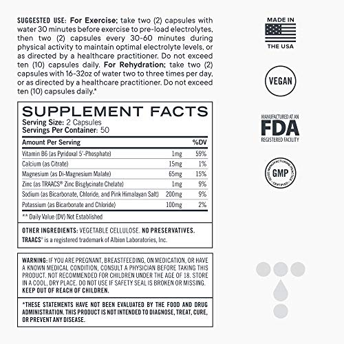 Electrolyte Capsules (100ct) Low Carb Natural Replacement Rehydration Salts with Magnesium, Zinc, Calcium, Sodium, Support for Keto, Electrolyte Salts