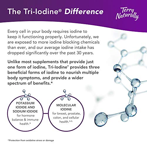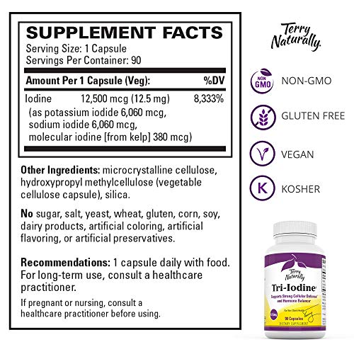 Terry Naturally Tri-Iodine 12.5 mg – 12500 mcg Iodine, 90 Vegan Capsules – Supports Hormone Balance, Promotes Breast