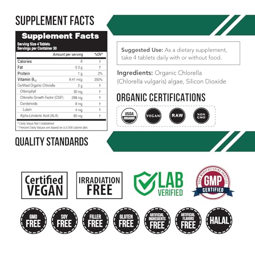 Chlorella Orgânica mais Pura do Mundo – 3 Certificações Orgânicas – Forma de Parede Celular Quebrada: Os comprimidos de Chlorella Orgânica BioChlorella atendem aos rigorosos padrões orgânicos e de qualidade de todos os principais órgãos certificadores orgânicos. É certificado orgânico pelo USDA, Naturland e EU. Essas entidades garantem que apenas os mais rigorosos padrões de pureza sejam seguidos durante o cultivo. Segue os mesmos padrões de cultivo da nossa famosa Spirulina Orgânica.