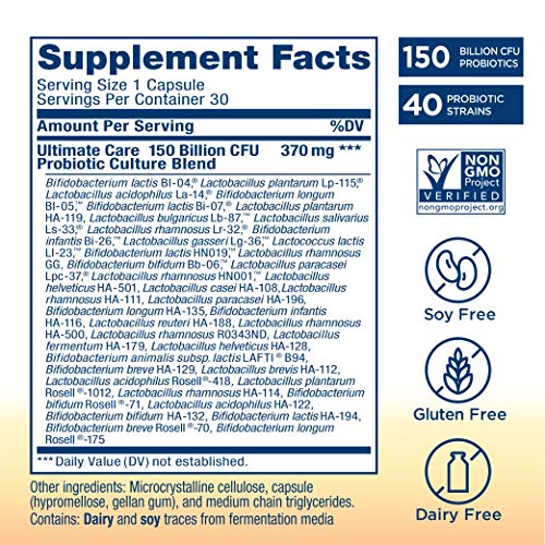 Renew Life Ultimate Flora Adult Ultimate Care Probiotic, 150 Billion, 30 Caps (Package May Vary)