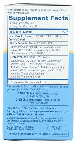 A Renew Life é uma marca renomada e reconhecida por sua qualidade. O Ultimate Flora Extra Care Probiotic 50 Billion é fabricado com ingredientes de alta qualidade e passa por rigorosos testes de controle de qualidade para garantir a eficácia e segurança do produto.