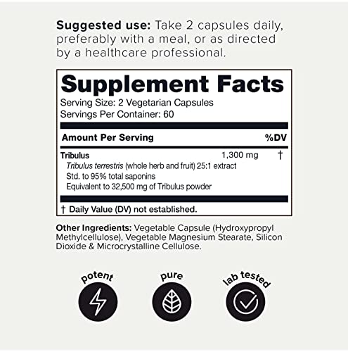 Toniiq Ultra High Strength Tribulus Capsules – 95% Steroidal Saponins – 1300mg Concentrated Extract Formula for Testosterone – 120 Caps