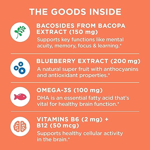 Essas cápsulas contêm uma mistura especializada de ingredientes, incluindo Bacosides do extrato de Bacopa, extrato de mirtilo, ômega-3 e vitaminas B6 e B12, que trabalham em sinergia para fornecer benefícios abrangentes para o cérebro.