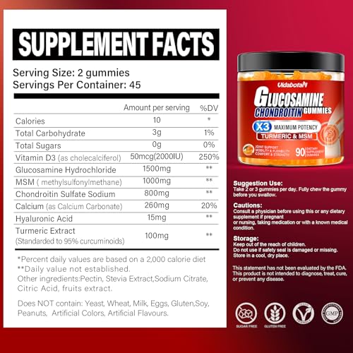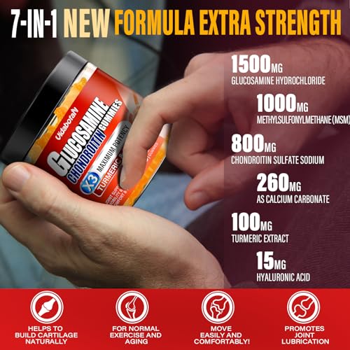 1. Suporte Articular de Alta Potência – Nossas gomas de Glucosamina contêm uma fórmula cientificamente comprovada com 1500mg de Glucosamina, 1000mg de MSM e 800mg de Condroitina, proporcionando um suporte articular eficaz.