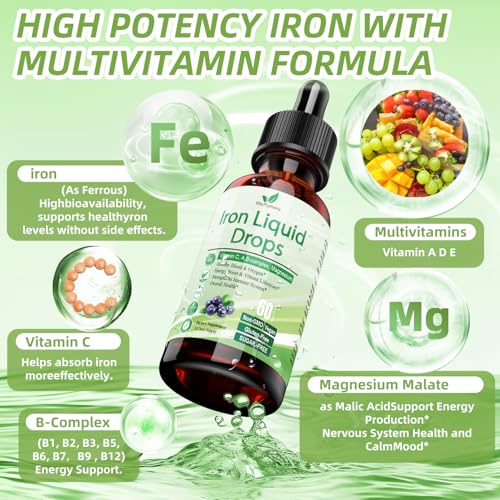 Suplemento Líquido de Ferro para Mulheres, Homens e Crianças