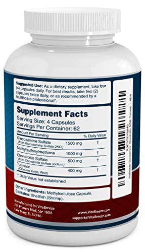 Fórmula de Triplo Forte com Cúrcuma – Mais consumidores escolhem apoiar seu corpo com o suplemento VitaBreeze Glucosamina, Condroitina, MSM e Cúrcuma. Poucas marcas oferecem TODOS os 4 desses ingredientes poderosos (especialmente a Cúrcuma), e nenhuma com a mesma satisfação do cliente excepcional como a VitaBreeze. Faça um favor a si mesmo e comece com o melhor.