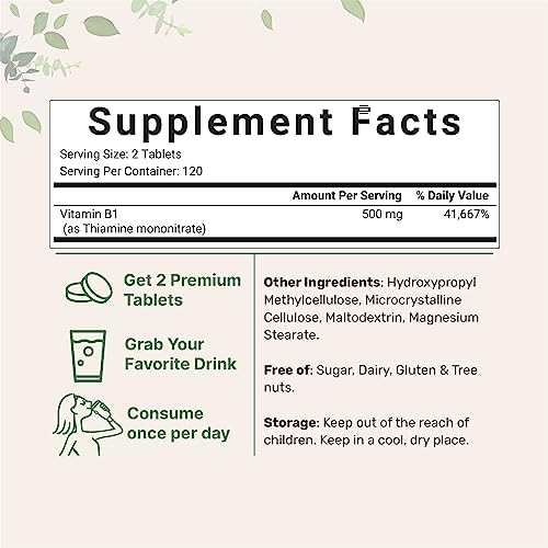 Micro Ingredients oferece comprimidos ativos de vitamina B1, 500mg por porção, mononitrato de tiamina de alta qualidade, forma solúvel em água facilmente absorvida, sem adição de corantes ou sabores artificiais. Cada embalagem contém 240 comprimidos, com tamanho de porção de 2 comprimidos e dose de vitamina B1 pura de 500mg, o suficiente para um suprimento de até 4 meses. Tomar diariamente fornece vitaminas essenciais do complexo B que suportam diversas funções corporais, incluindo suporte ao sistema nervoso, função muscular, equilíbrio eletrolítico e metabolismo de carboidratos para energia sustentável. O mononitrato de tiamina, forma ativa de B1, é facilmente absorvido pelo corpo e pode repor os níveis baixos de vitamina B ao longo do tempo tanto em homens quanto em mulheres. Os suplementos de vitamina B1 da Micro Ingredients são premium, não transgênicos e feitos sem soja, laticínios, glúten, conservantes, sabores e nozes. Os ingredientes passam por testes de laboratório de terceiros para garantir um produto seguro, puro e potente.