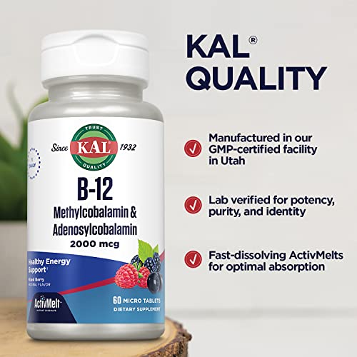 Qualidade KAL – Essas vitaminas vegetarianas de B12 são fabricadas em nossa instalação certificada GMP em Utah e são verificadas em laboratório usando os mais rigorosos padrões para garantir pureza e potência. Além disso, como todos os suplementos KAL, eles vêm com nossa garantia de devolução do dinheiro em 60 dias.
