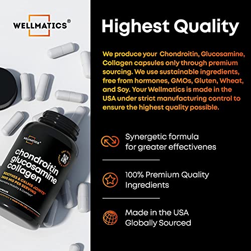 Melhor Suplemento Articular para Joelhos, Costas, Mãos – Recupere seu estilo de vida ativo com as Cápsulas de Glucosamina, Condroitina e MSM da Wellmatics, uma adição essencial à sua lista de vitaminas elegíveis para FSA. Ao tomar apenas 4 cápsulas diariamente, você pode aliviar o desconforto nas costas, joelhos, ombros, cotovelos, mãos e quadris. Experimente resultados perceptíveis que permitem que você retorne a atividades como exercícios, subir escadas, caminhar, correr e levantar pesos – assim como antes!