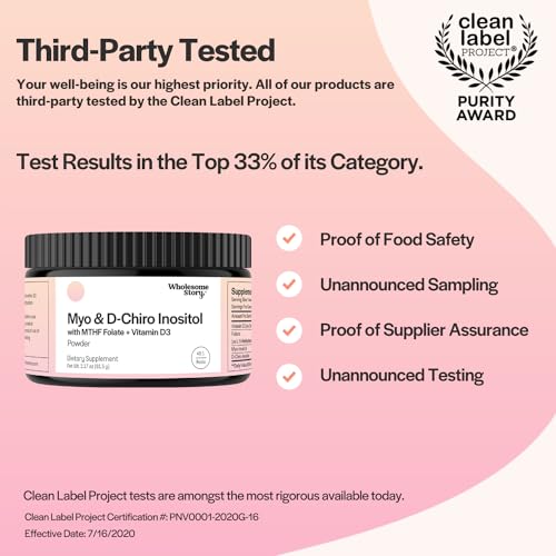 Suprimento de 30 Porções e Certificado pelo Projeto Rótulo Limpo: Nosso Myo & D-Chiro Inositol com MTHF & D3 é adequado para veganos e foi testado quanto a metais pesados, plastificantes e agroquímicos. Limpeza importa!