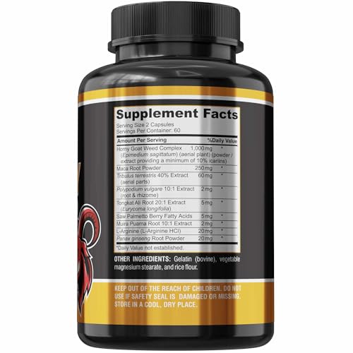 Com 9 ingredientes poderosos, incluindo Horny Goat Weed, Maca, Tribulus Terrestris, Tongkat Ali, L-Arginina, Ginseng e mais 3 ervas adicionais conhecidas por melhorar a libido, a resistência, a energia e a saúde, o Horny Goat Weed Extra Strength Blend é uma escolha confiável para quem busca um impulso natural na vida sexual.