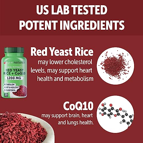 Red Yeast Rice 1200 mg Capsules with CoQ10 – Maintain Healthy Cholesterol Levels, Herbal Heart Health Vegan Red Yeast Rice Supplement – Red Rice Yeast with CoQ10 for Women