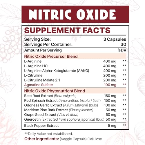 Mistura poderosa de óxido nítrico: Ingredientes como L-Arginina, L-Citrulina e Sulfato de Agmatina, juntamente com nossa exclusiva Mistura Fitonutriente de Óxido Nítrico, são conhecidos por elevar significativamente os níveis de óxido nítrico.