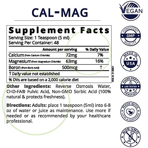 Com um excelente custo-benefício, apenas uma tampa do produto fornece 9% do Valor Diário de Cálcio, 16% do Valor Diário de Magnésio e 500mcg de Boro. Uma garrafa de 8oz fornece suprimento para 48 dias de cálcio e magnésio.