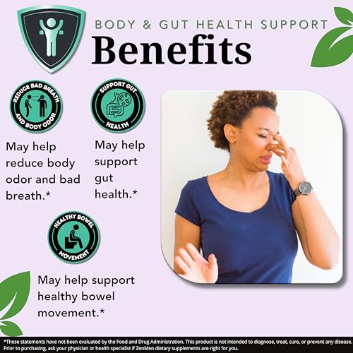 4. Benefícios da clorofila: As cápsulas ZenMen Body Odor Pills contêm clorofila autêntica rica em antioxidantes, que estimula movimentos intestinais saudáveis e apoia colônias prebióticas no intestino sem causar flatulência com odor.