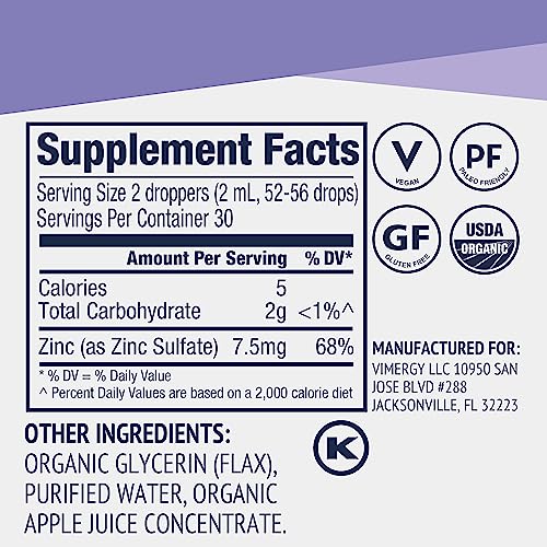 O Vimergy Organic Liquid Zinc, Travel Size é um suplemento de zinco líquido de alta qualidade que oferece uma série de benefícios para a saúde. Diferente de gomas, cápsulas ou comprimidos, nossa fórmula é absorvida mais rapidamente, graças às gotas líquidas de zinco naturalmente doces e deliciosas. Feito com glicerina de linhaça orgânica à base de plantas, o Vimergy Zinc não deixa nenhum sabor metálico ou herbal desagradável. Adicionar algumas gotas de zinco líquido ao seu suco ou smoothie matinal é uma ótima maneira de obter um impulso diário para a saúde.