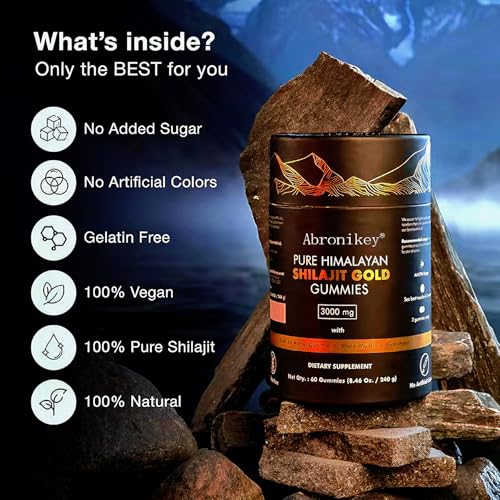 As Gomas de Ouro de Shilajit Puro do Himalaia, com 3000mg e 60 gomas (8,46 oz.), são feitas a partir de Shilajit autêntico, uma substância rica em minerais encontrada nas montanhas do Himalaia. Cada goma contém uma poderosa fórmula de 3000mg de Shilajit Gold, combinada com Ashwagandha, Black Musli e Gokshura. Essas gomas são projetadas como um suplemento nutricional para apoiar a saúde geral e o bem-estar. A embalagem contém 60 gomas, fornecendo um suprimento de um mês para suplementação diária. Além disso, essas gomas são embaladas individualmente, tornando-as amigáveis para viagens. Aproveite a bondade da ayurveda tradicional de uma forma moderna com essas gomas deliciosas, que são uma maneira natural de adicionar Shilajit à sua rotina diária ativa e aprimorar seus treinos. Recomenda-se consumir 2 gomas por dia para obter resultados ótimos.